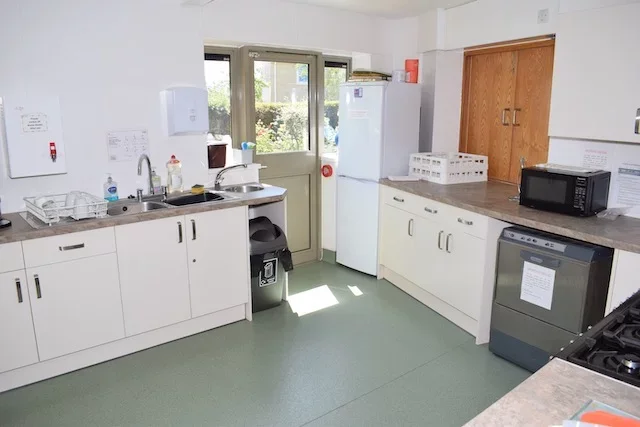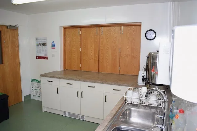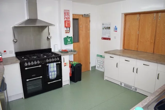 Fully functional kitchen utilities include: microwave, industrial dishwasher, oven with grill, sink, and an industrial coffee percolator, and fridge-freezer. The kitchen has a large number of cups, crockery and cutlery available for use. Recycling and food waste bins are provided in addition to a general waste bin. For information on what can/cannot be recycled, please visit the guide on Eastleigh Borough Council’s website.